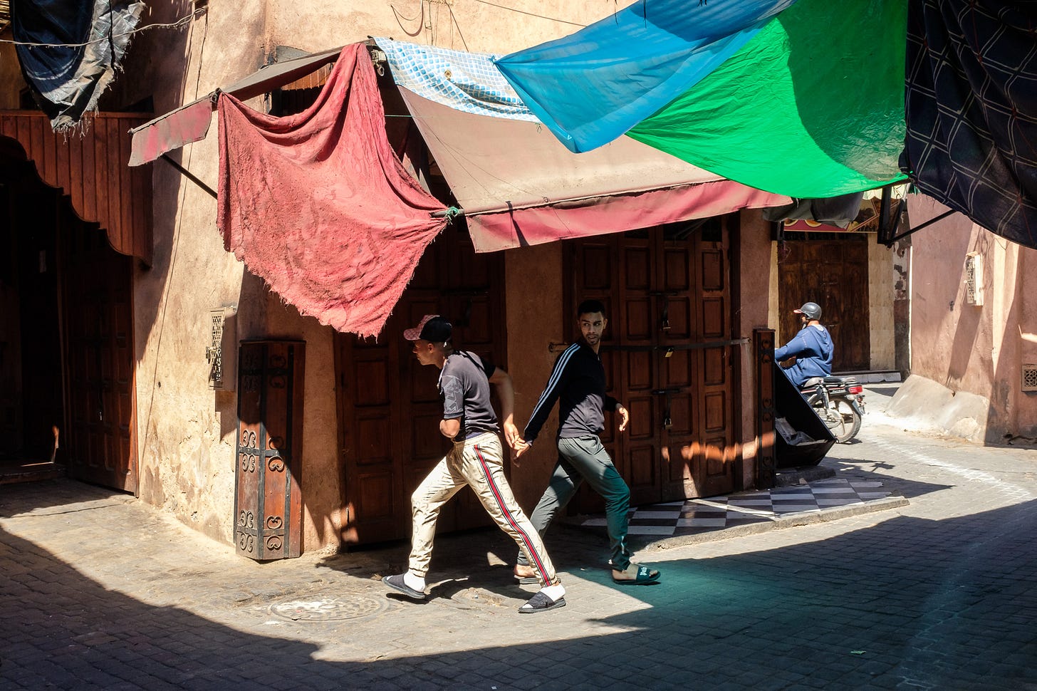 With these images, I have drifted into a more intentional style of image-making. In Morocco, I slowed down and began to loiter in areas with good light and wait for things to happen. Using the viewfinder more than the backscreen to compose, I worked the scenes and came up with more premeditated photographs than previously.